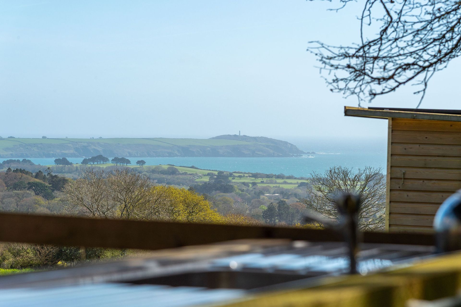 Our two beautifully crafted wooden Barrel Cabins offer a cosy and unique glamping experience with stunning views across Carlyon Bay.
